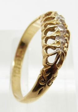 Victorian 18ct gold ring set with five old cut diamonds, 2.6g, size P