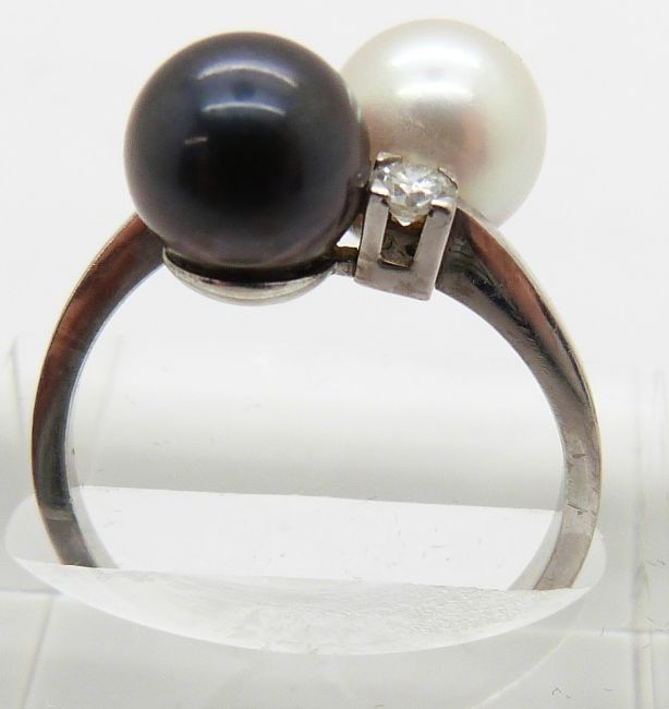 An 18ct white gold ring set with pearls and diamonds, 4.9g, size M