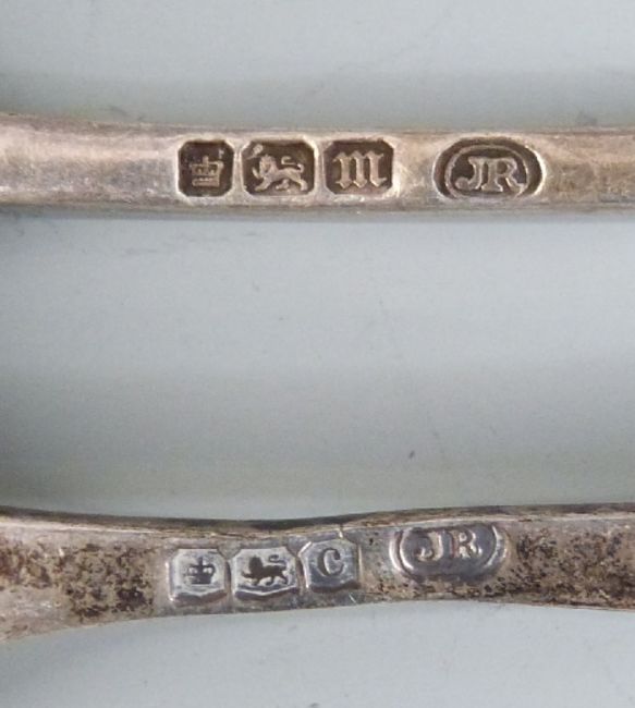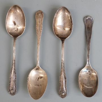 Four hallmarked silver teaspoons, three being Sheffield 1904 maker John Round & Son Ltd, length 13.5cm weight 95g
