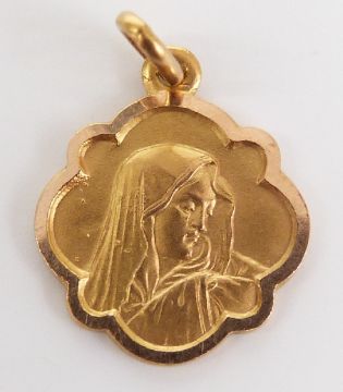 An 18ct gold pendant with relief decoration of the Virgin Mary, 1.8g