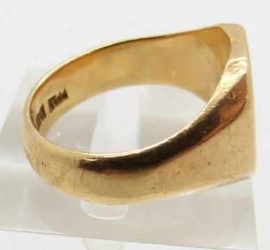An 18ct gold signet ring, 10.5g, size Q and a yellow metal ring, 3.1g, size L
