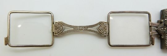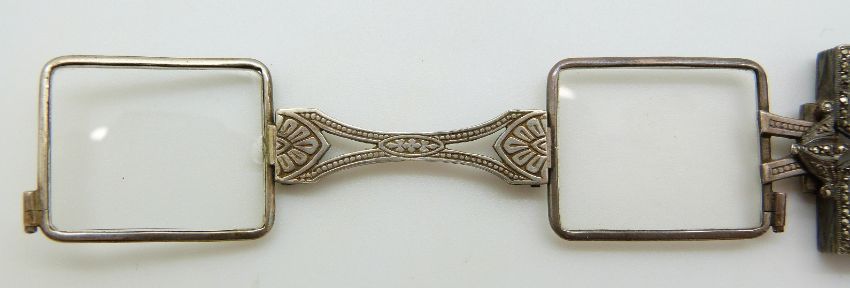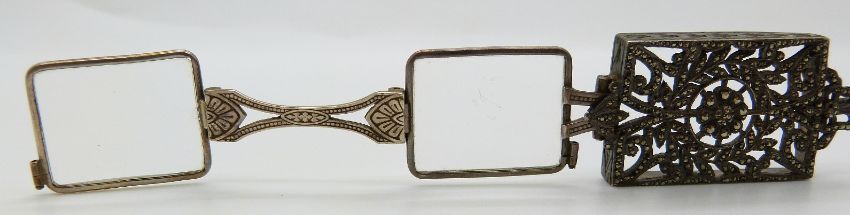 French silver lorgnettes pendant set with marcasite, 5.5 x 2.5cm
