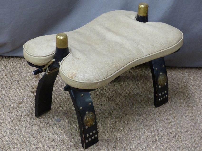 An upholstered carved camel stool, W40 x D57cm