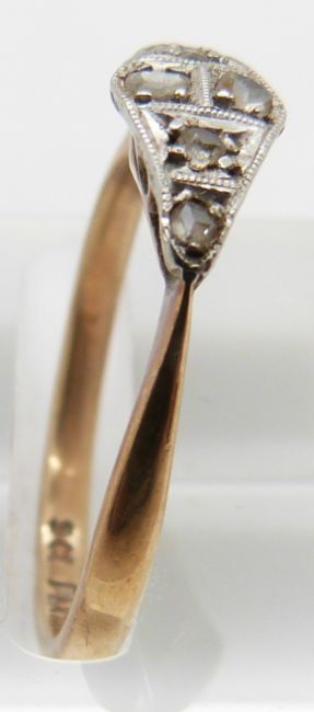 A 9ct gold ring set with diamonds in a platinum setting, 1.8g, size O