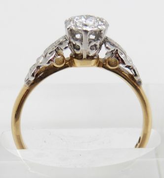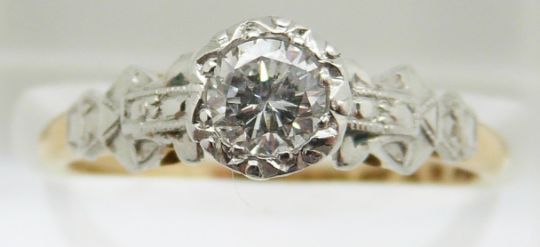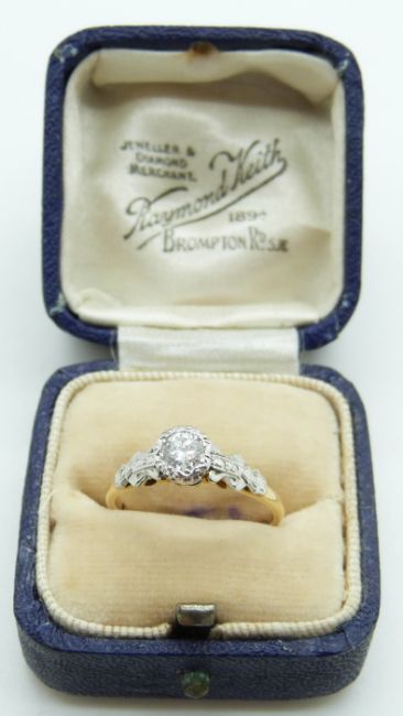 An 18ct gold ring set with a round cut diamond of approximately 0.4ct in a platinum setting, in original box, 3g, size M