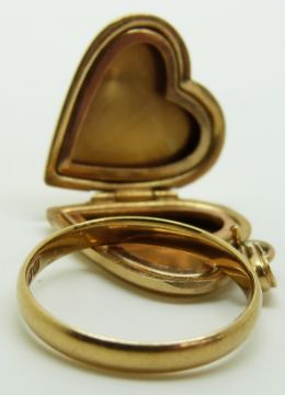 A 9ct gold heart locket 4g and an 18ct gold wedding ring / band 2.3g