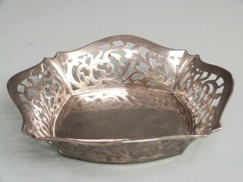 George V hallmarked silver pierced and shaped basket, Birmingham 1926 maker Spurrier & Co, width 16cm weight 107g