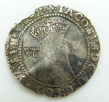 James I (1603-25) hammered silver sixpence 1604, obverse F-VF, reverse VF