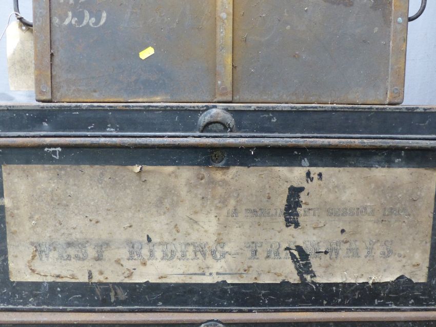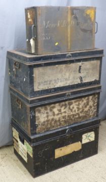 Four metal trunks, largest W67 x D52 x H45cm