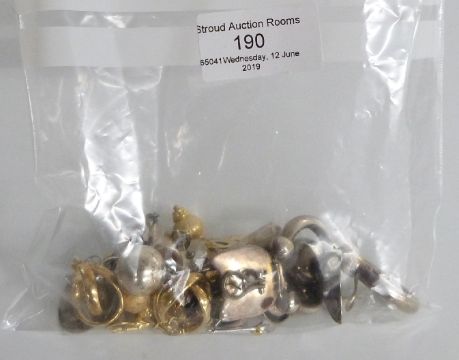Three pairs of silver gilt earrings including, pair silver earrings set with cubic zirconia, and a pair set with diamonds, a pair of silver and 18ct gold earrings in the form of cats and other silver earrings
