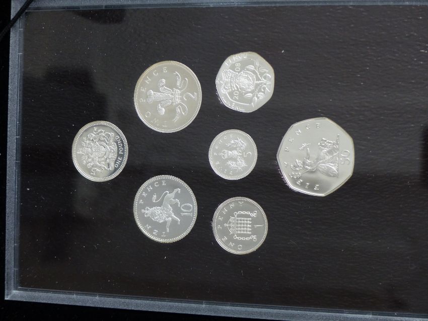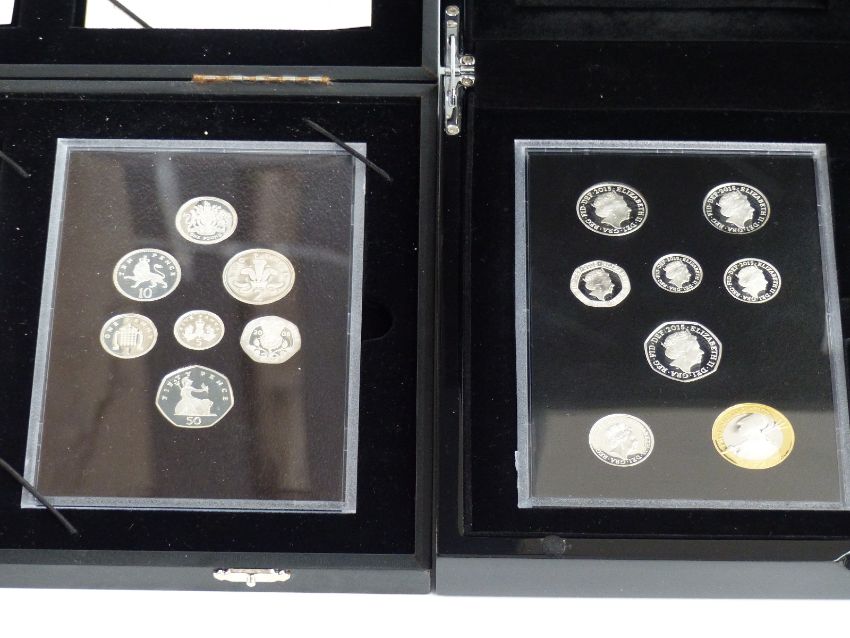 Royal Mint 2008 and 2015 UK silver proof coin sets, both in deluxe cases with certificates