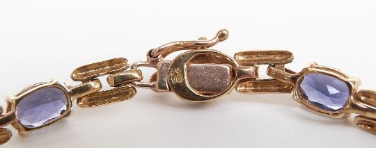 A 9ct gold bracelet set with oval cut tanzanites, 5.5g