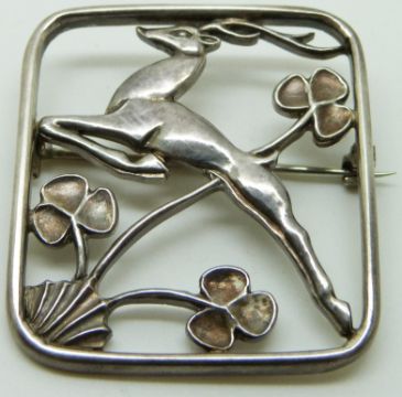 George Ballamy for George Tarrant brooch, depicting a jumping deer amongst clover/ shamrock, Birmingham 1960, 3.5 x 4cm