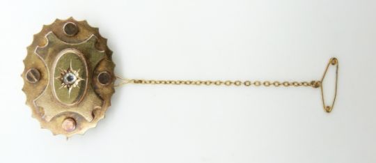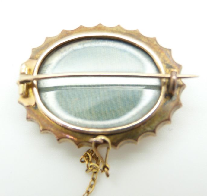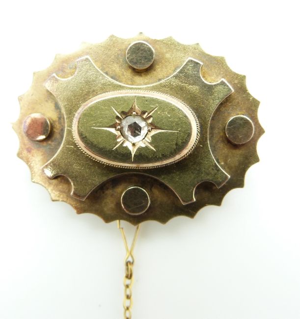 Victorian gold brooch set with an rose cut diamond in a star setting, verso a glass compartment, 9.7g, 3.5 x 2.7cm
