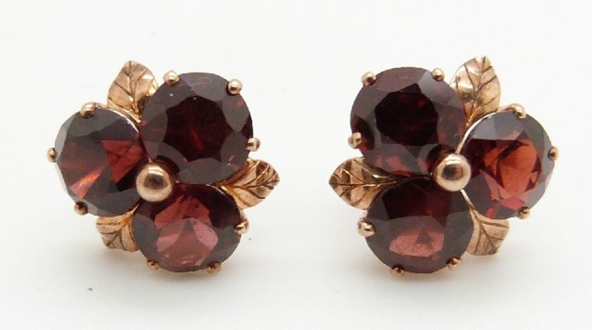 A pair of 9ct gold earrings set with garnets