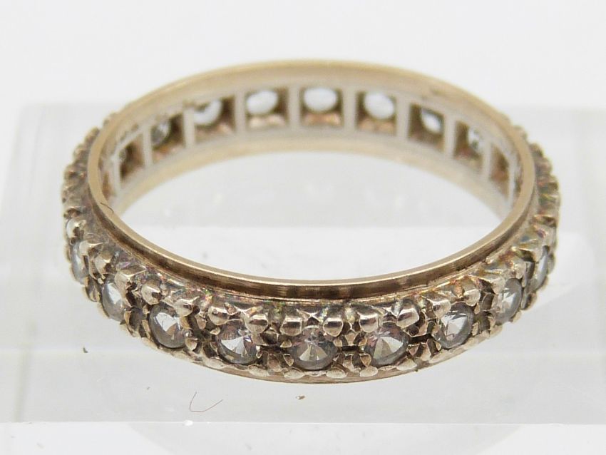 A 9ct gold ring, 9ct gold eternity ring, 4.4g and another ring