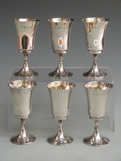 Set of six retro feature hallmarked silver goblets, Birmingham 1973 maker Warwickshire Reproduction Silver, height 11cm weight 405g