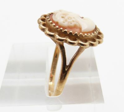 A 14ct gold ring set with cubic zirconia and turquoise and a 9ct gold ring set with a cameo