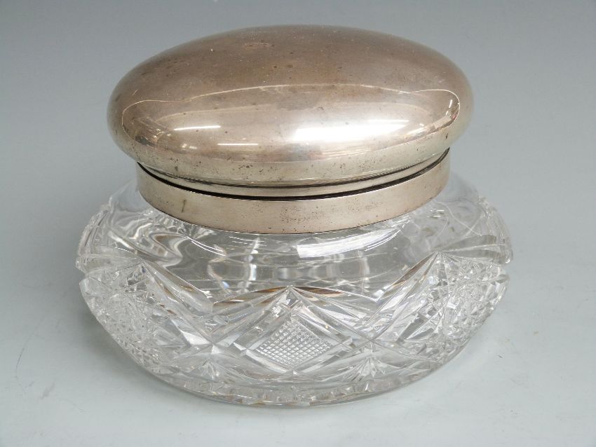 German white metal lidded cut glass oversize dressing table pot, with German 800 grade silver marks, diameter 17cm