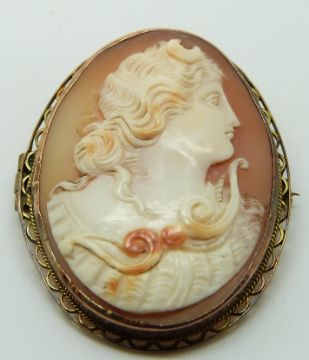 A 9ct gold cameo depicting a lady, 3.5 x 4.2cm