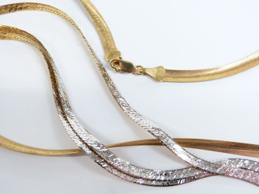 A 9ct gold necklace, 20.5cm drop and 9ct gold bracelet, 16.2g