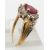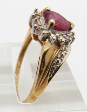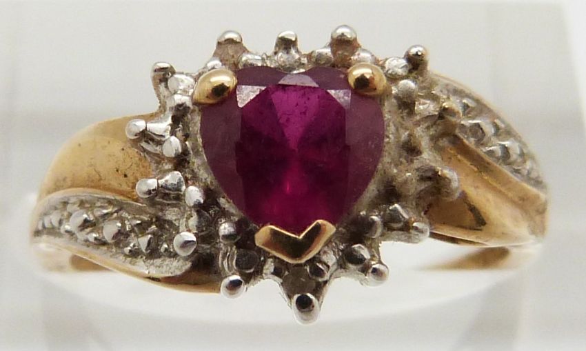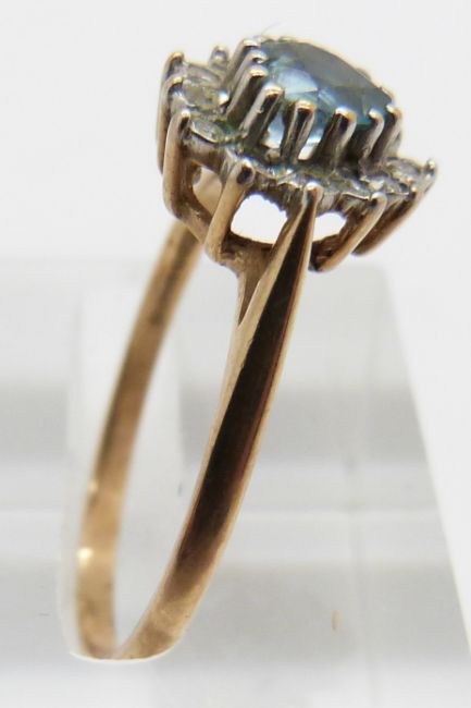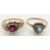 A 9ct gold ring set with a blue topaz and diamonds and another 9ct gold ring set with a faux ruby, 4.2g