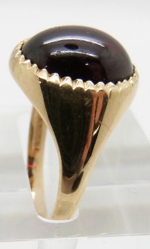 A 9ct gold ring set with a garnet cabochon, 3.4g, size N