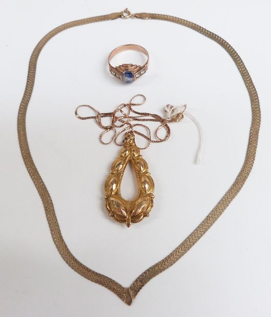 A 9k gold necklace and a further 9ct gold necklace with 9ct gold pendant, weight of both 9.0g
