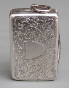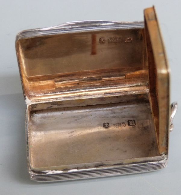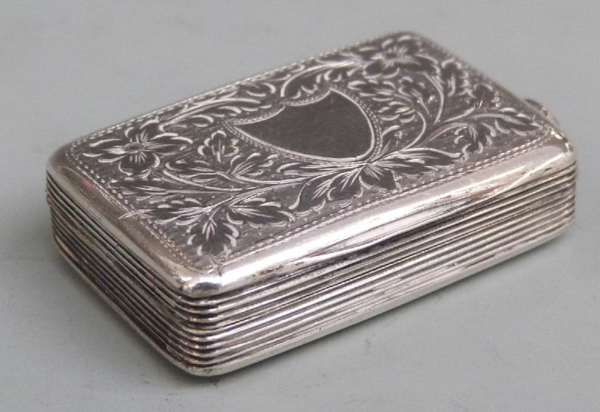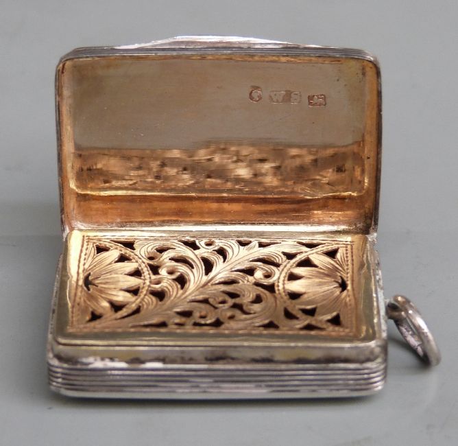 Victorian hallmarked silver vinagrette with hinged lid and pierced inner cover with gilt interior, Birmingham 1840 maker William Smith, length 4cm weight 16g