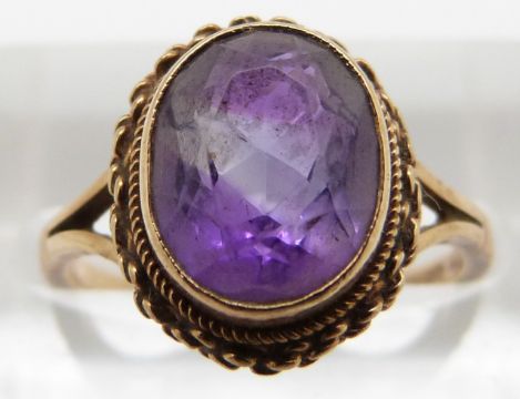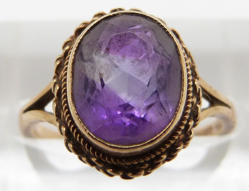A 9ct gold ring set with an amethyst and a 9ct gold and silver ring 5.1g