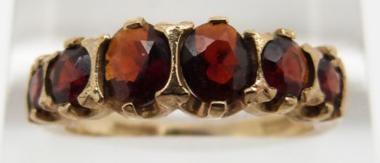 Two 9ct gold rings, one set with garnets and the other peridot, 6.4g