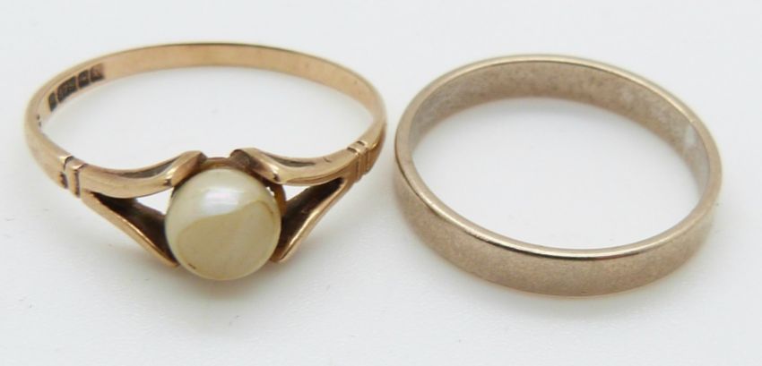 A 9ct gold ring and a 9ct gold wedding band, 3g