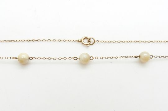 A 9ct gold section of necklace, a yellow metal necklace set with pearls and a 9ct gold T bar, 16.5g