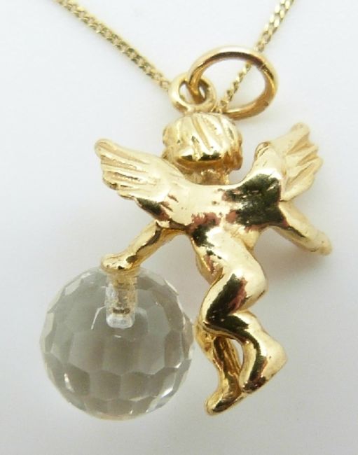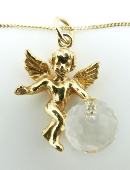 A 9ct gold cherub pendant and chain, 3.5g