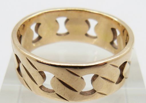 A 14k gold ring with cut out decoration, 7.2g, size V