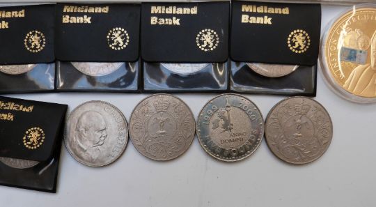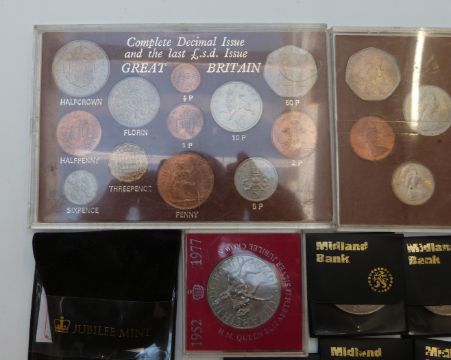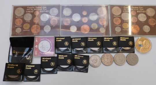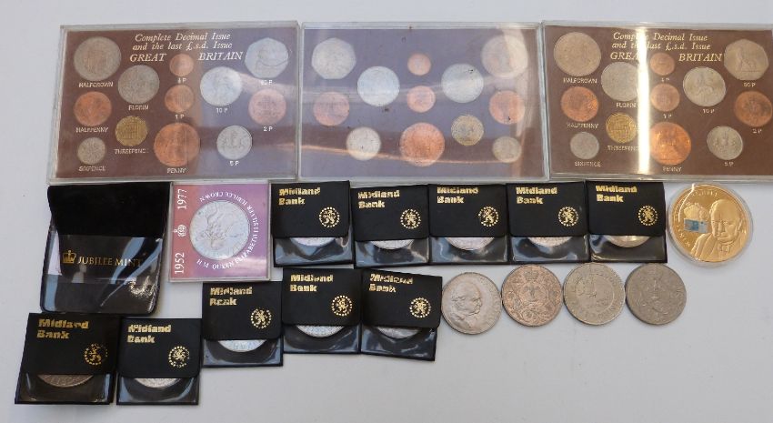 Silver proof £1 coin commemorating the year of the three Kings, together with a collection of modern crowns, pre-decimal coin sets etc