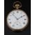 Gold plated keyless winding open faced pocket watch with inset subsidiary seconds dial, blued hands, black Arabic numerals, white enamel dial and 15 jewel movement, case diameter 51mm, serial number 910511.