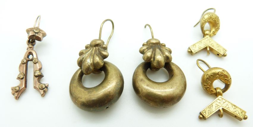 A group of Victorian earrings,including yellow metal