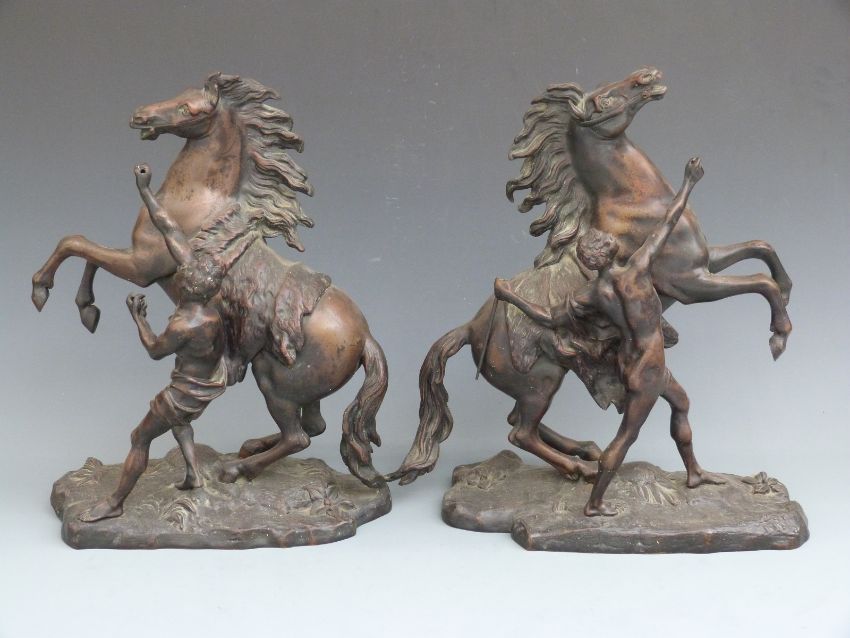 Pair of bronze Marley horses after Coustou, signed to bases, height 45cm
