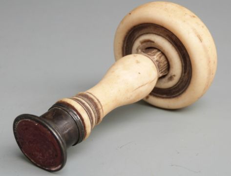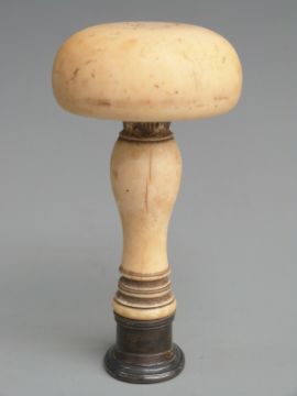 A large intaglio desk seal in the form of a mushroom, with white metal mount and screw-off top fitted with a 6cm steel spike, overall length 11cm