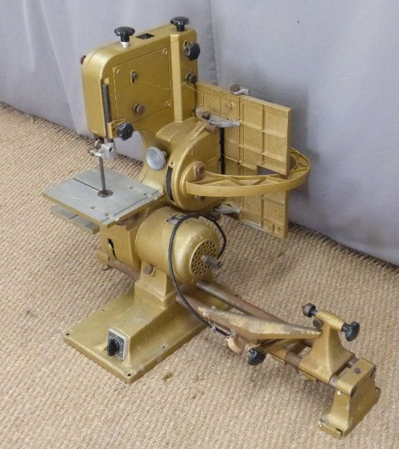 Emcostar electric woodworking multi-tool comprising band-saw, lathe, circular saw etc