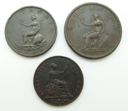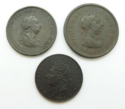 George IV 1826 halfpenny VF + together with a George III cartwheel penny and halfpenny