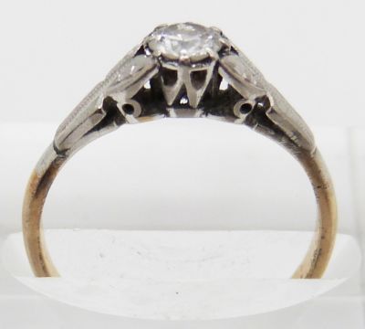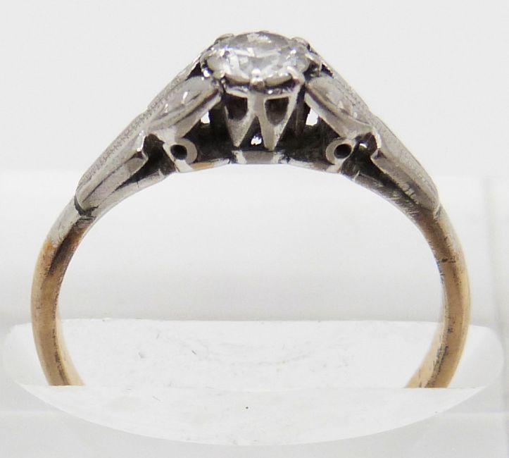 Art Deco 18ct gold ring set with a diamond of approximately 0.3ct in a platinum setting, in original box, 2.6g, size M