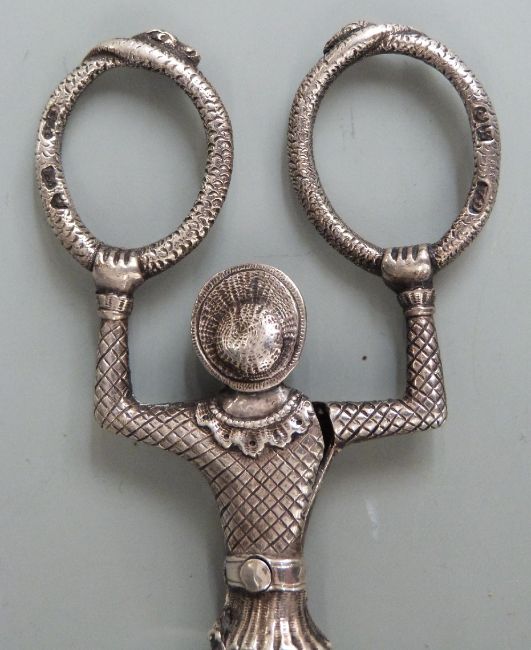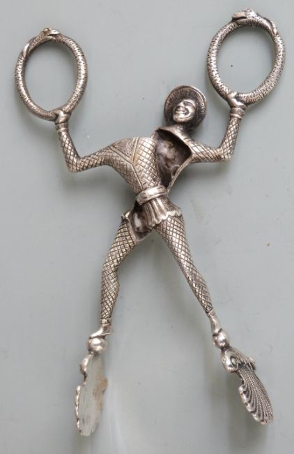 Victorian hallmarked silver novelty sugar nips formed as a jester, London 1873, maker GA most likely for Chawner & Co, length 12cm, weight 46g