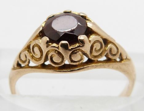 A 9ct gold ring set with a garnet, 2.1g, size J