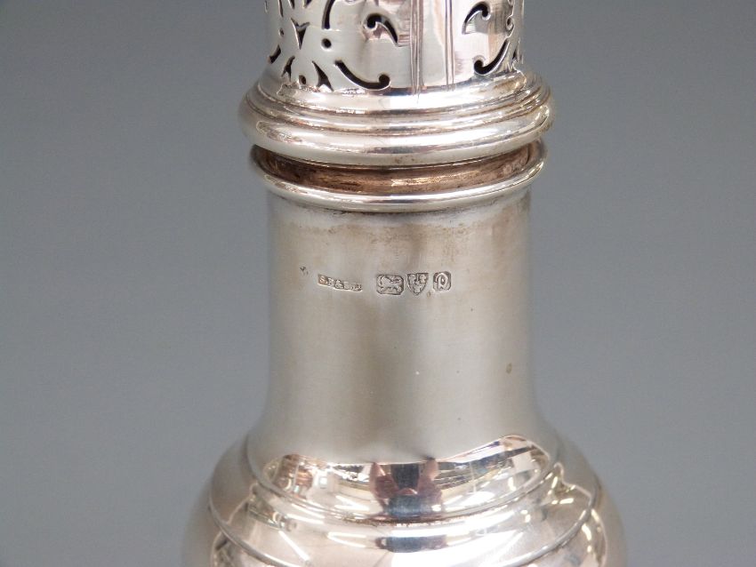 George V hallmarked silver sugar caster of baluster form, Chester 1929 maker S Blanckensee & Son Ltd, height 17cm weight 109g