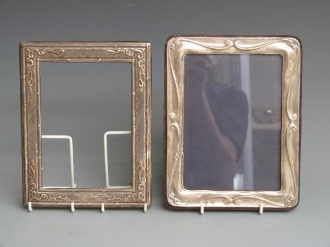 Modern hallmarked silver photograph frame to suit 7.5x5.5 inch photo, with velvet easel back, Birmingham 1985 maker's mark RBB, together with a similar size hallmarked silver photograph frame, Birmingham 1986 maker's mark PJP
