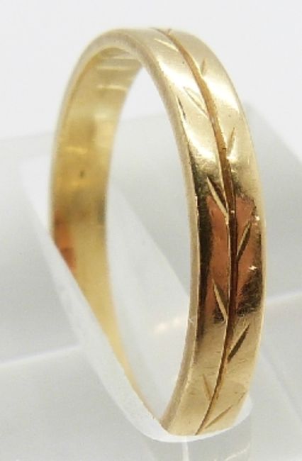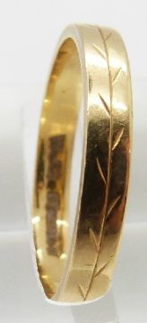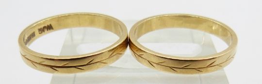 A pair of 18ct gold rings with foliate decoration, 4.7g, both size M