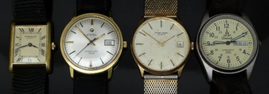 Four gentleman's wristwatches comprising Raymond Weil, Favre-Leuba, Roamer Vanguard 304 and a Darch military style watch.