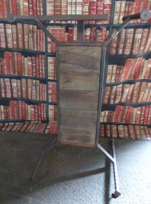 Industrial/haberdashery/shopfitting steel, weldmesh and oak hanging rail with detachable bolt on shelf, W75 x D80 x H135cm